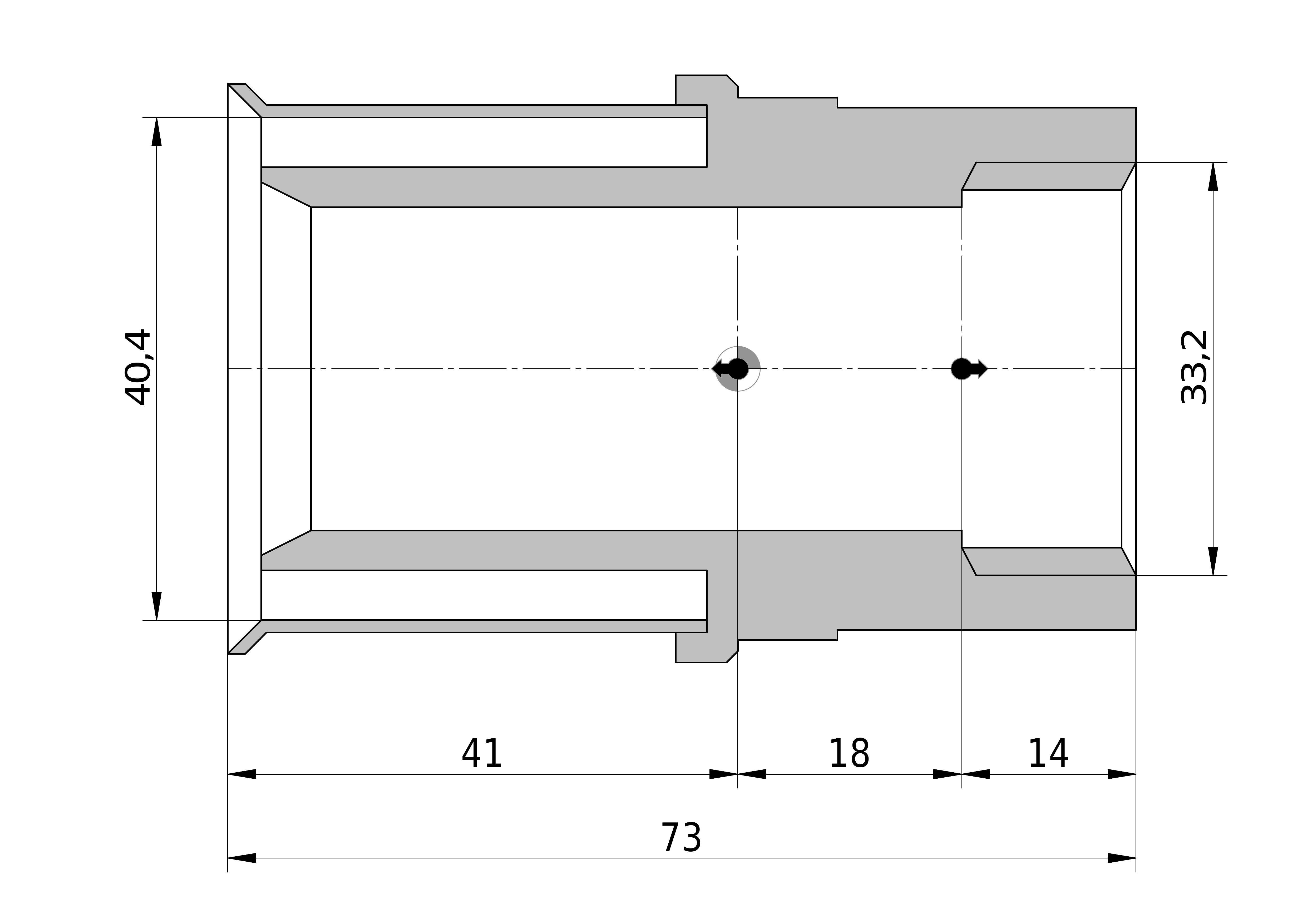 • Lengte aansluiting 1: 41,5 mm