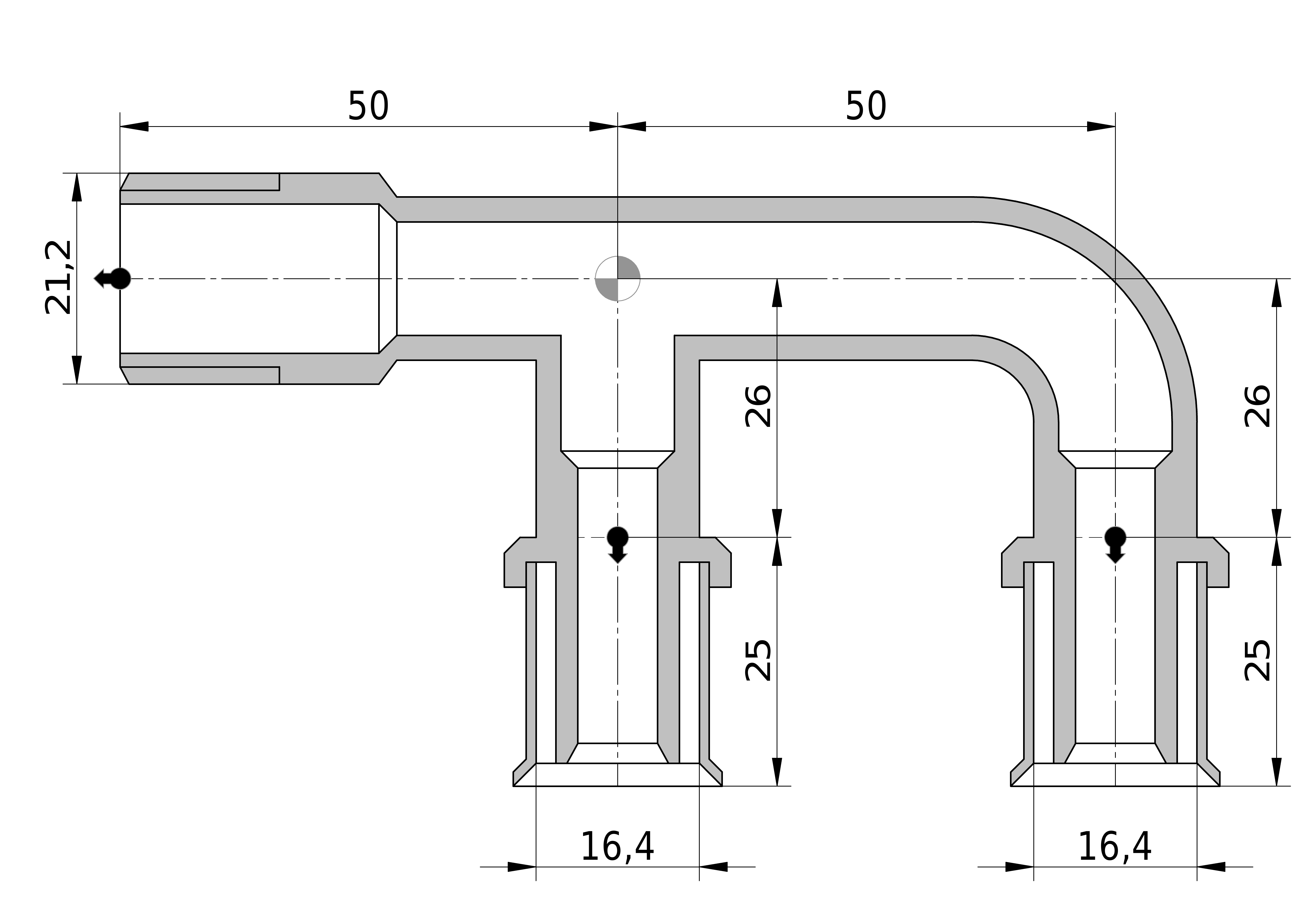 • Uitwendige buisdiameter aansluiting 2: 21,2 mm