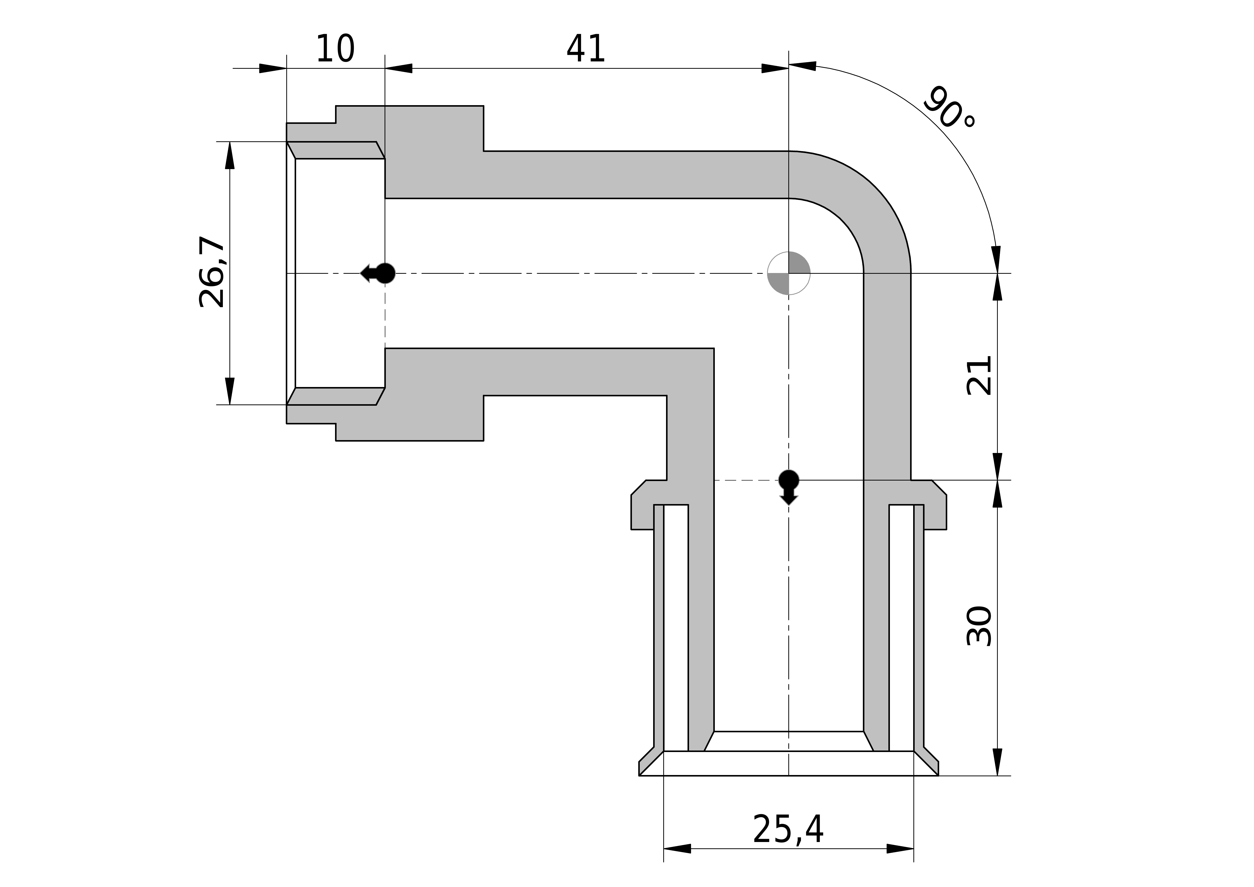 - Uitwendige buisdiameter aansluiting 2: 26,7 mm