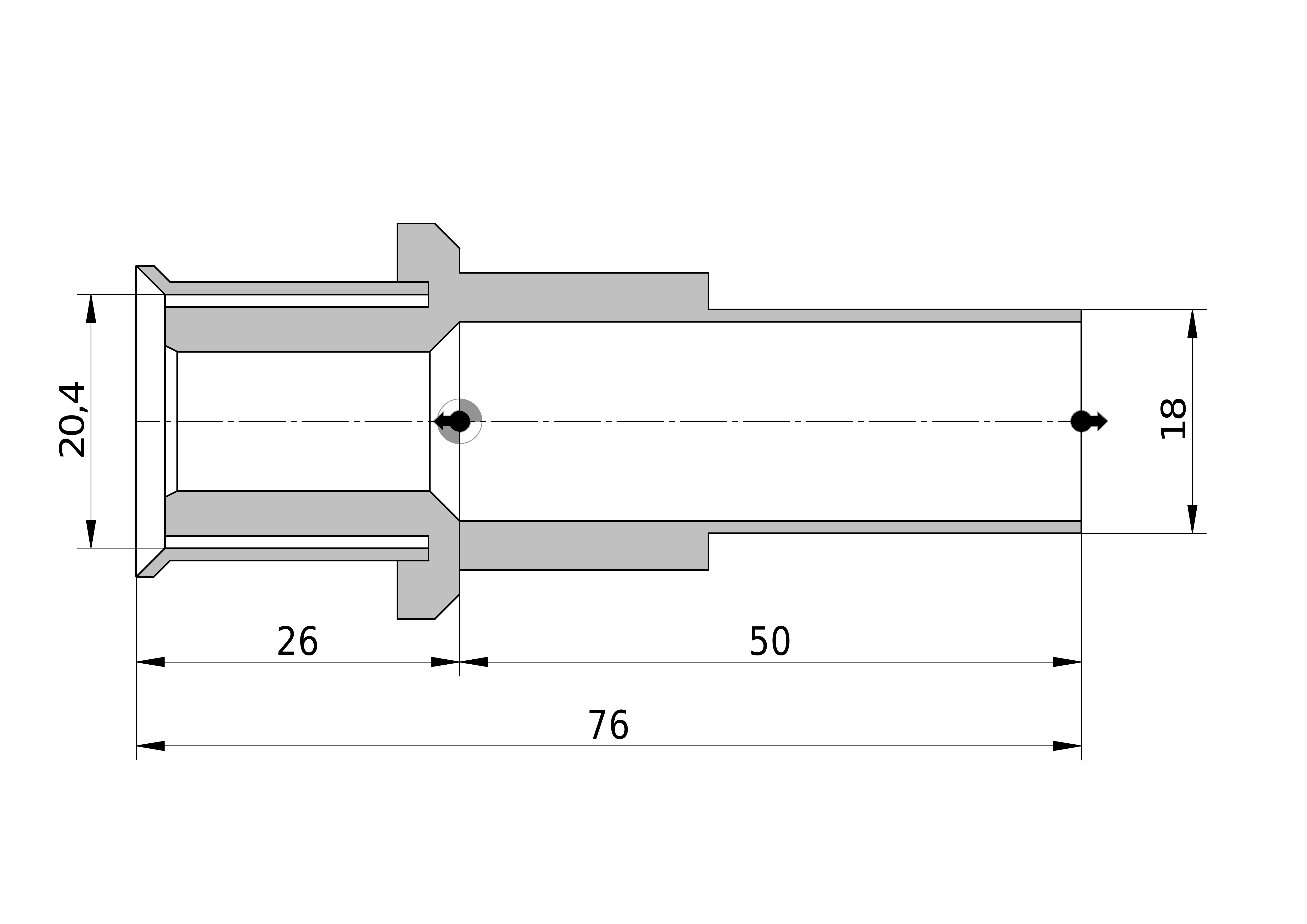 • Lengte aansluiting 2: 25,5 mm