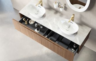 De meubelcollectie ARUN van LAUFEN combineert natuurlijke materialen en doordacht design, waardoor de badkamer warmte en karakter krijgt. Elk meubelstuk biedt flexibiliteit, stijl en vakmanschap voor een persoonlijke inrichting.