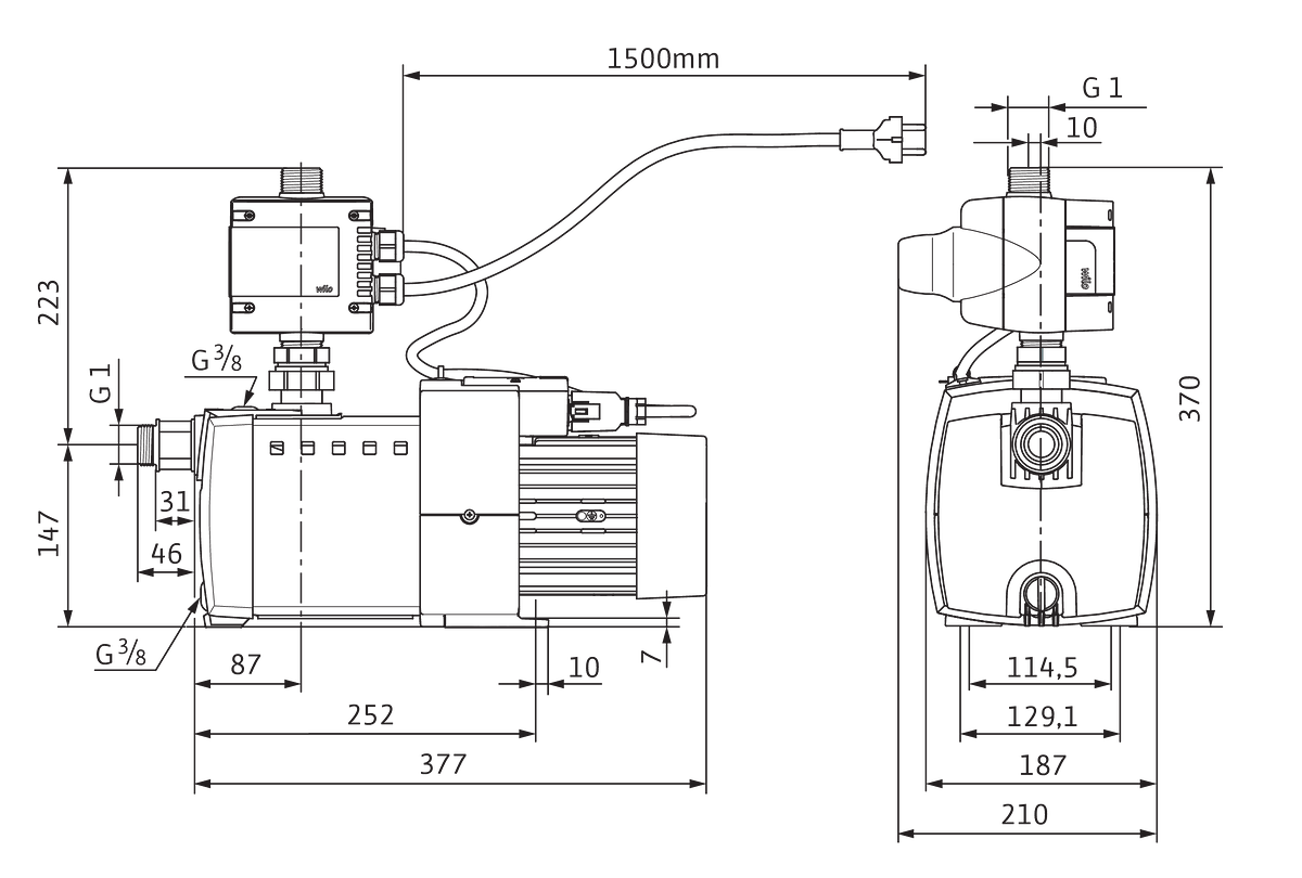 • Aansluiting uitlaatzijde: Buitendraad cilindrisch BSPP-G (ISO 228-1)