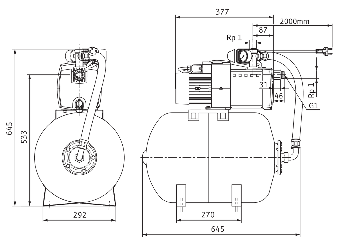 • Hoogte pomp: 533 mm