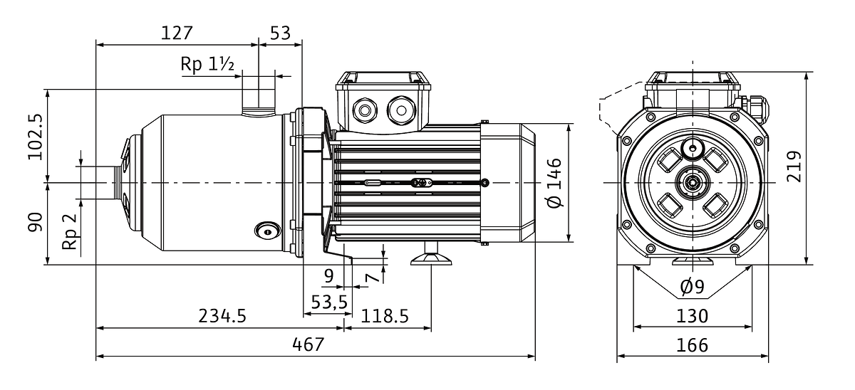 Wilo hogedrukpomp Medana CH1-L.1603-1,Rp 2,3x400V,1850W Wilo