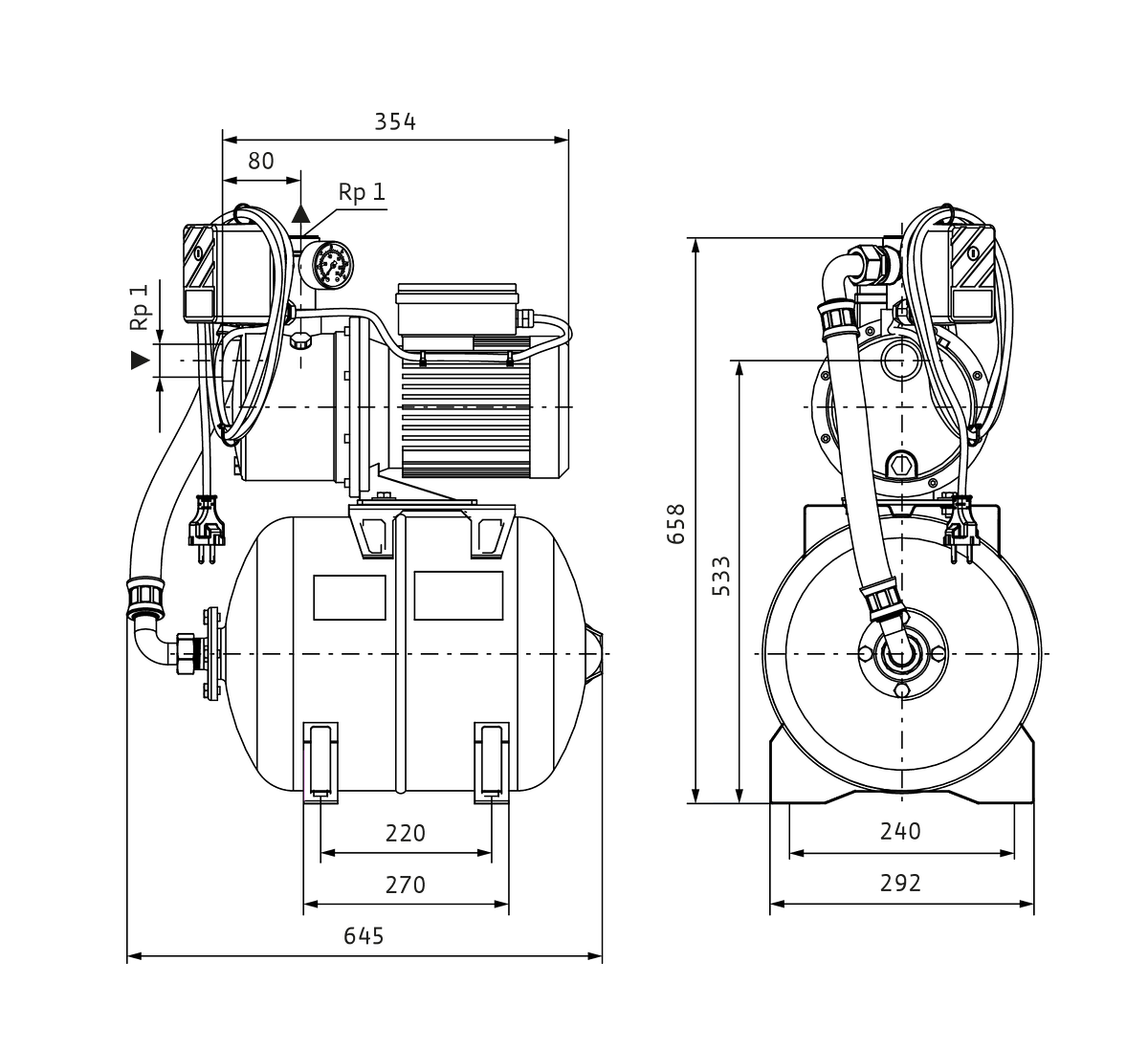 - Maattekening Jet HWJ-203-EM-50/2-2 (1~230 V)()