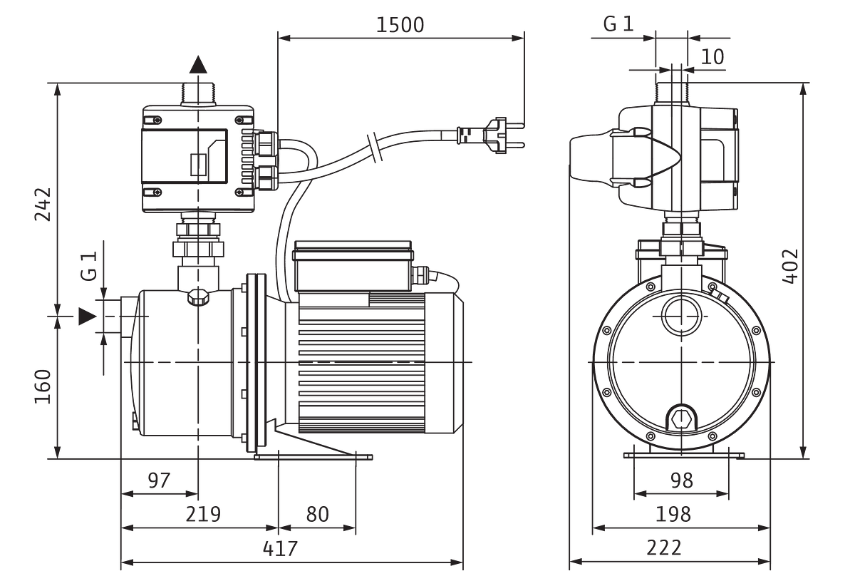 - Hoogte pomp: 160 mm