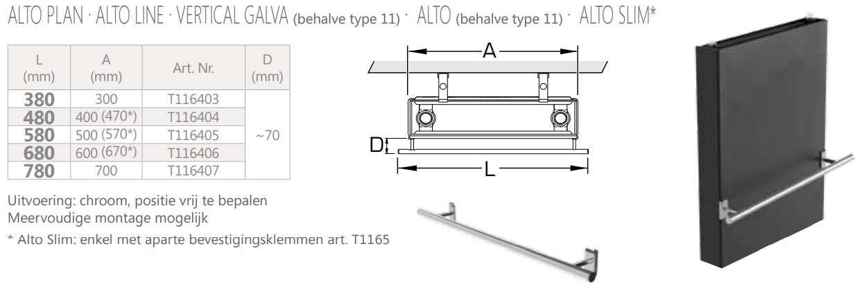 Handdoekbeugel 580mm chroom (v. radiatorbreedte 500mm) Henrad