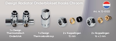 Onderblokset haaks PP Radiator chroom incl. adapter M24 15mm + M24 16x2.0 Ponnoplastic