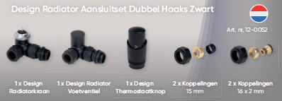 Aansluitset dubbel-haaks RH PP Radiator zwart incl. adapter M24 15mm + M24 16x2.0 Ponnoplastic