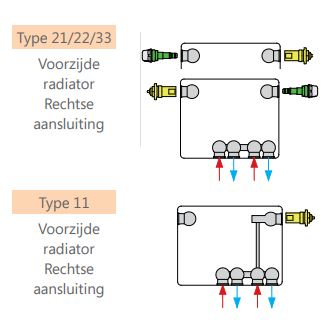 De ECO ventielradiator met seriële paneeldoorstroming (het paneel aan de voorzijde wordt eerst doorstroomd)