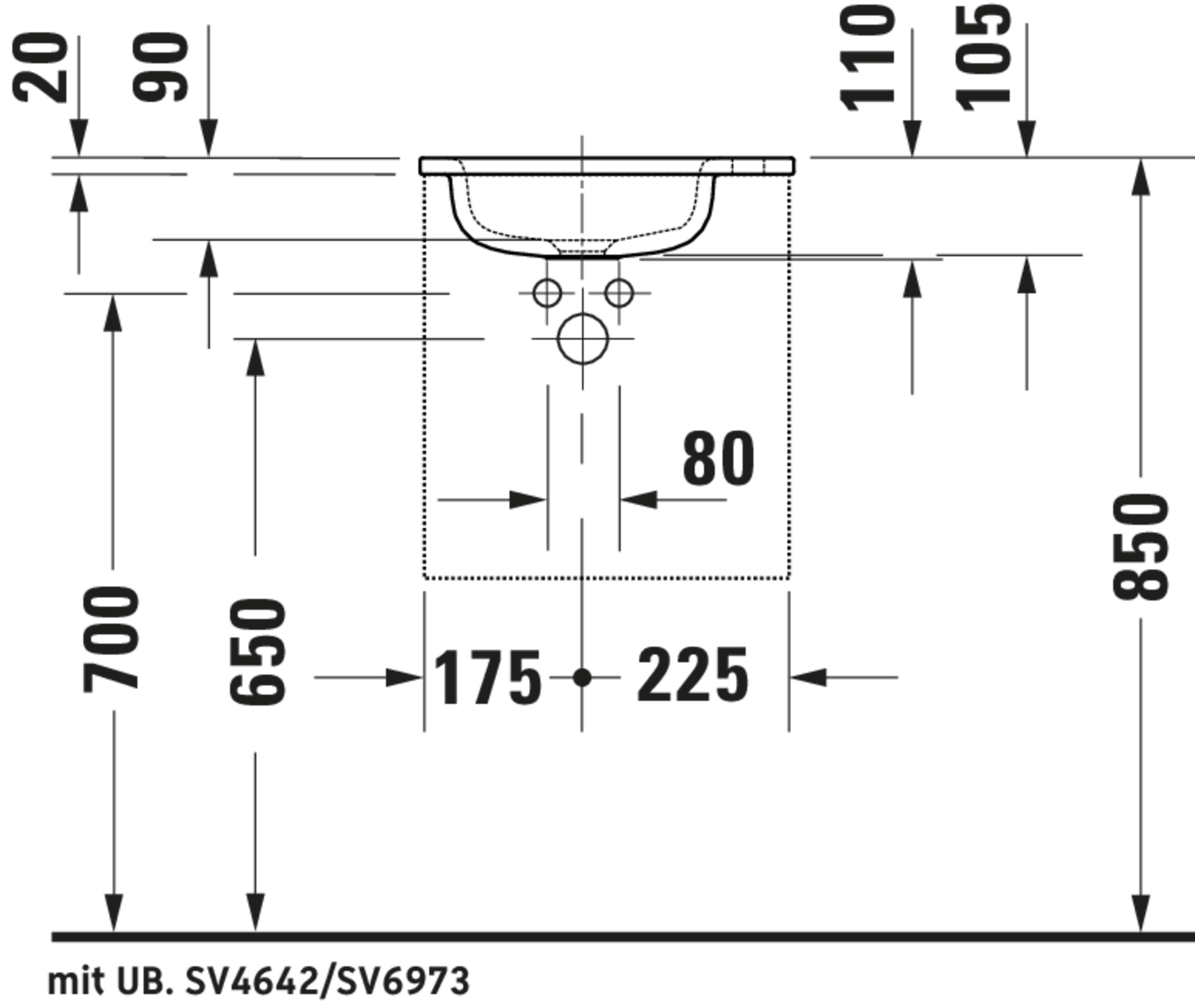• Aantal kraangaten per wasbak: 1